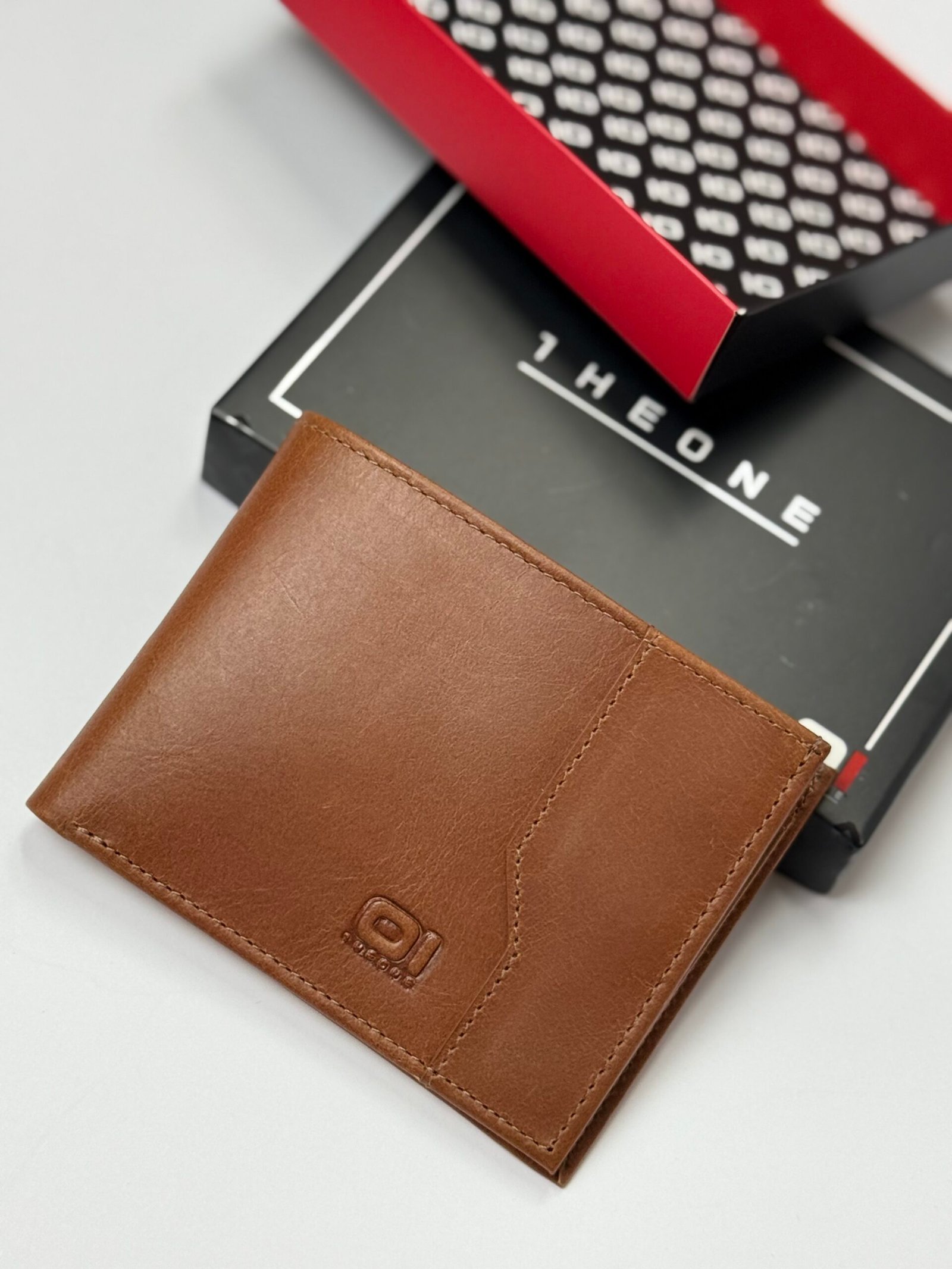 BILLETERA DE CUERO CAFÉ HORIZONTAL THE ONE
