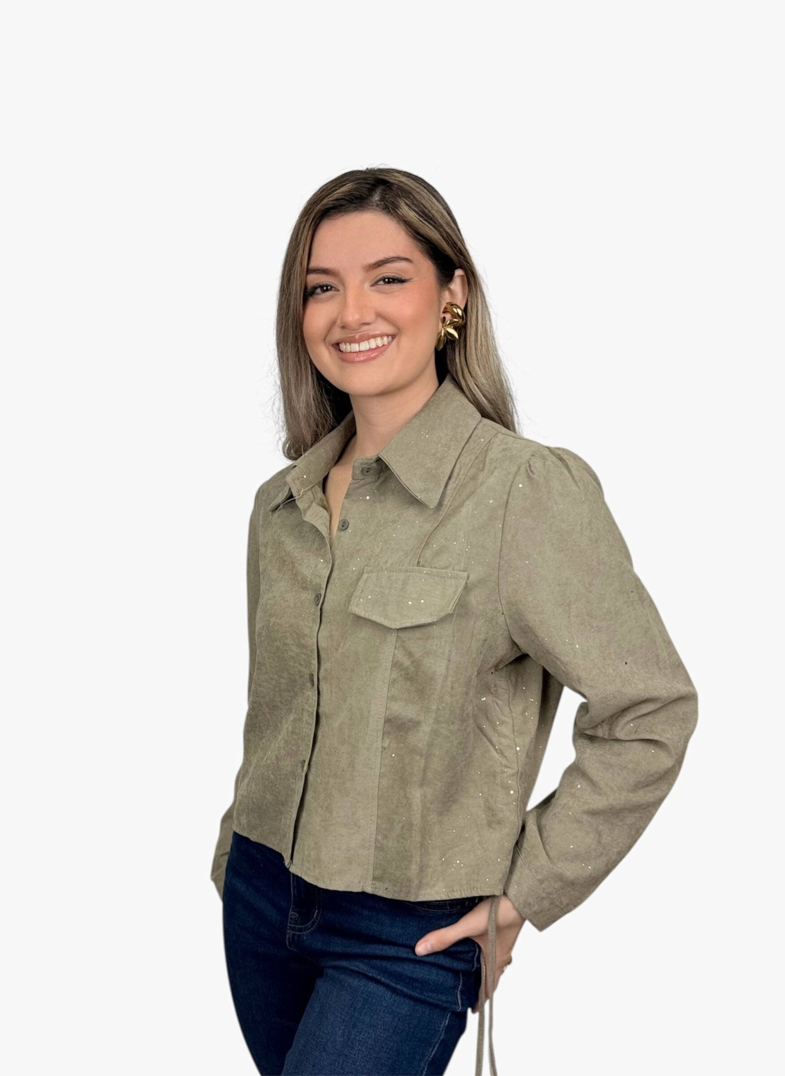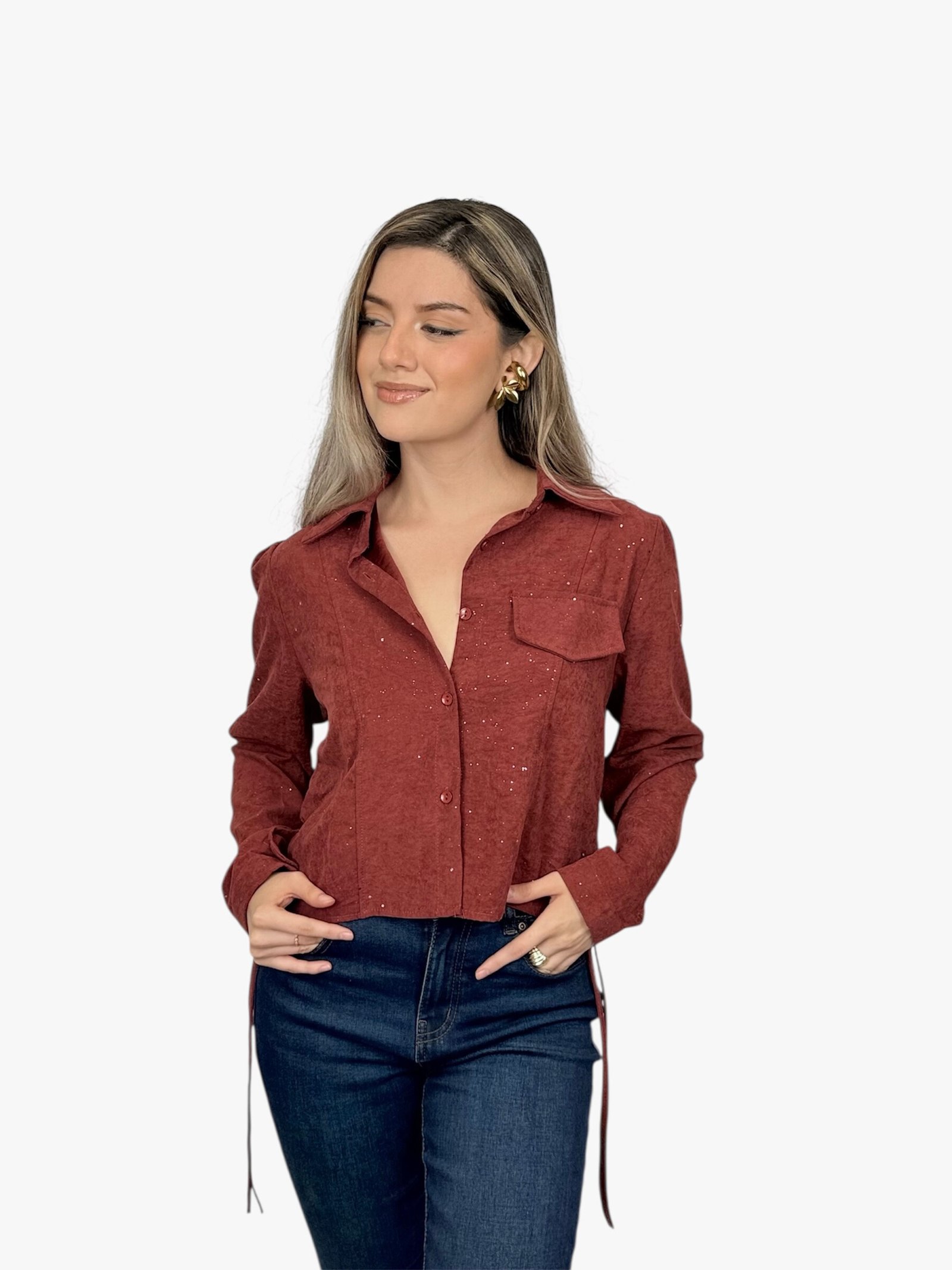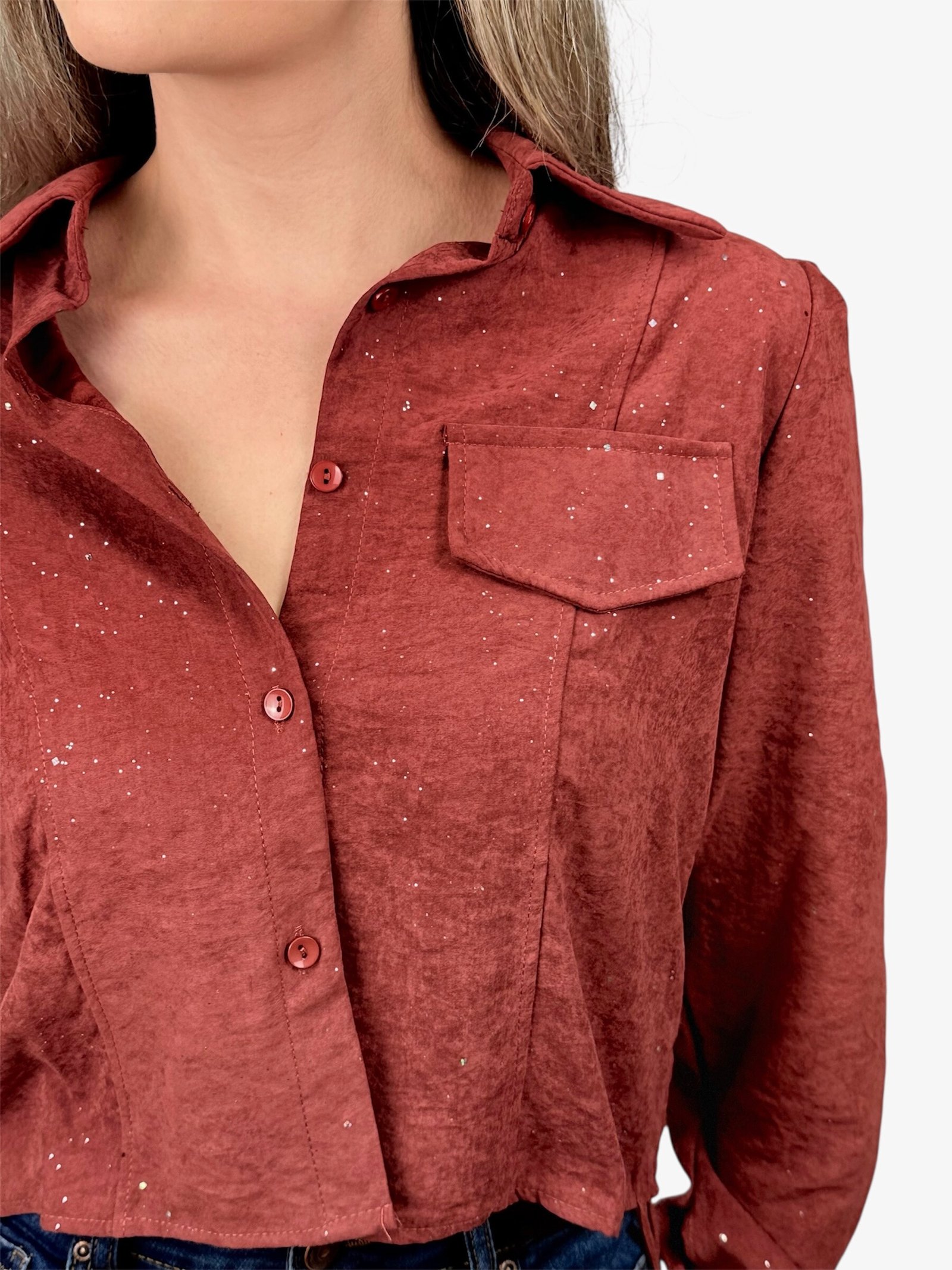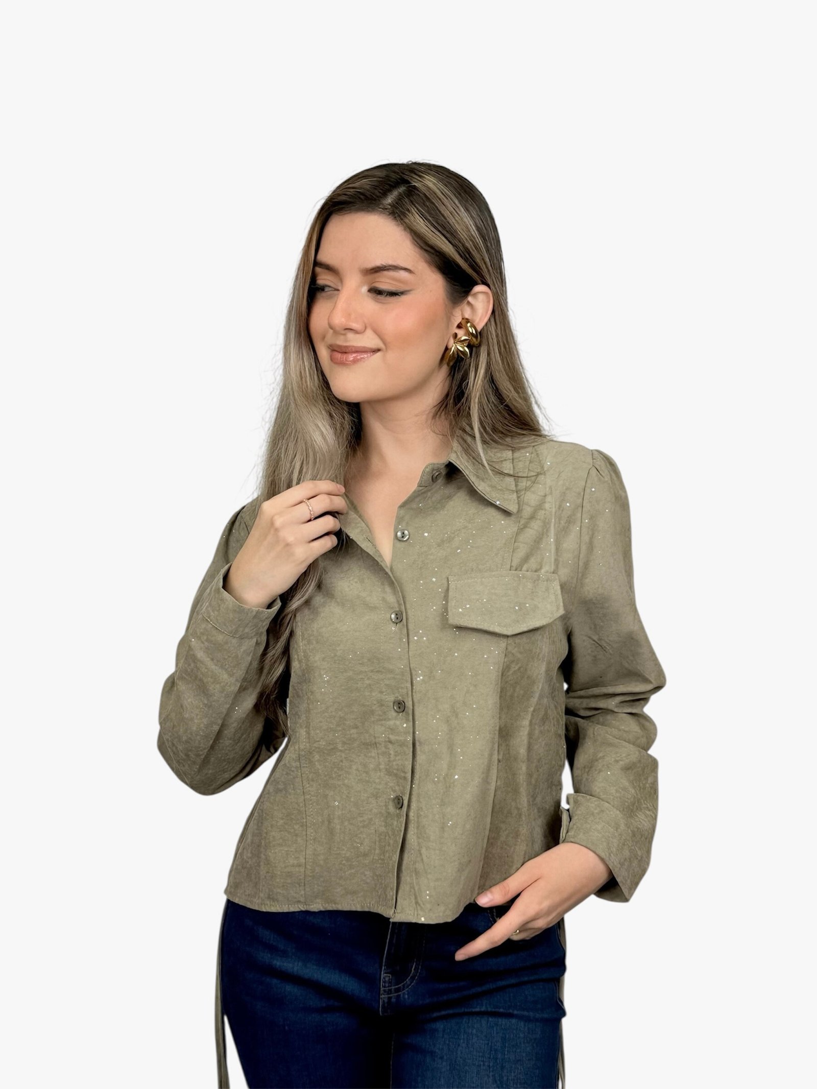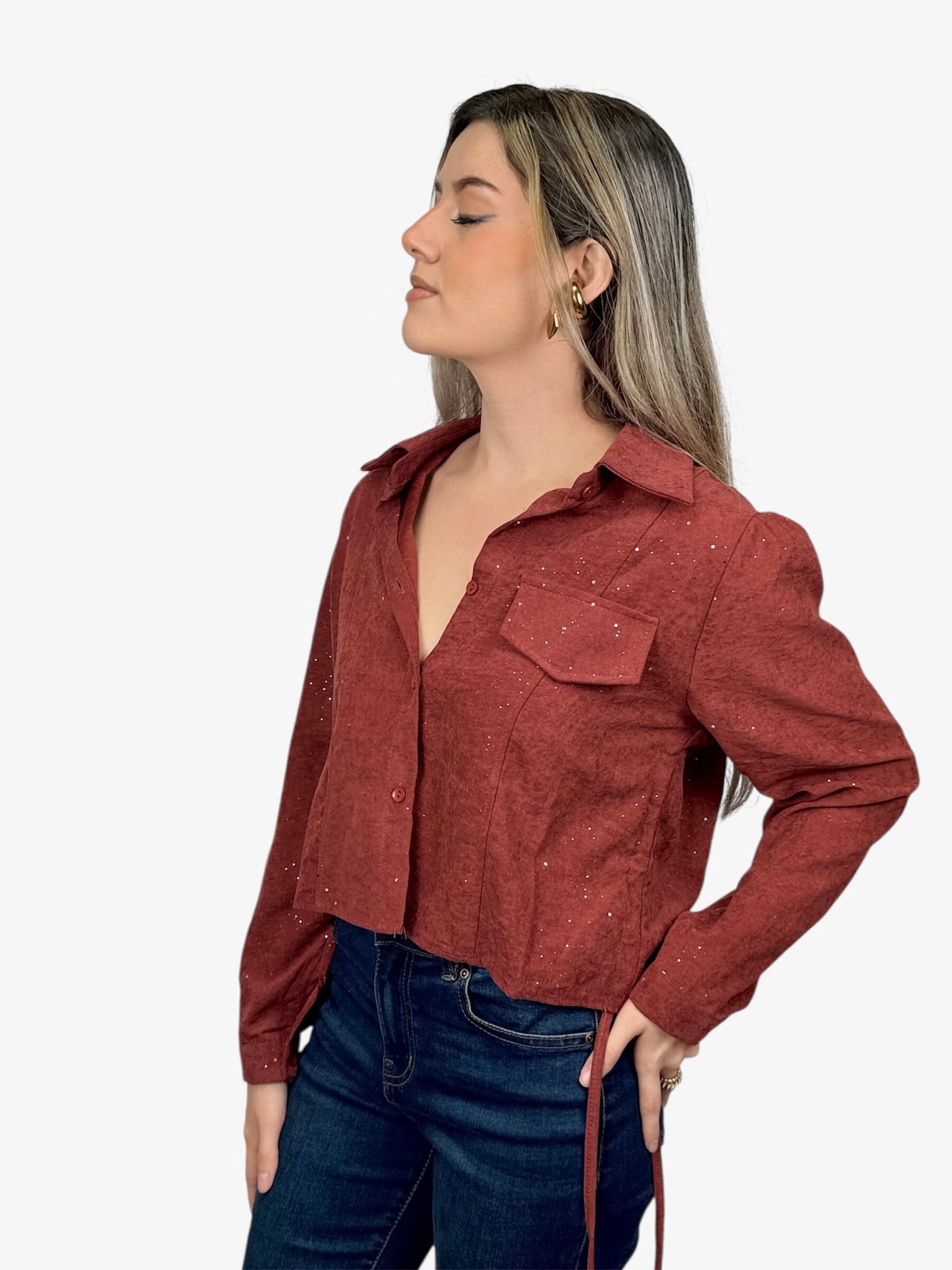 Blusa Creta manga larga con brillo