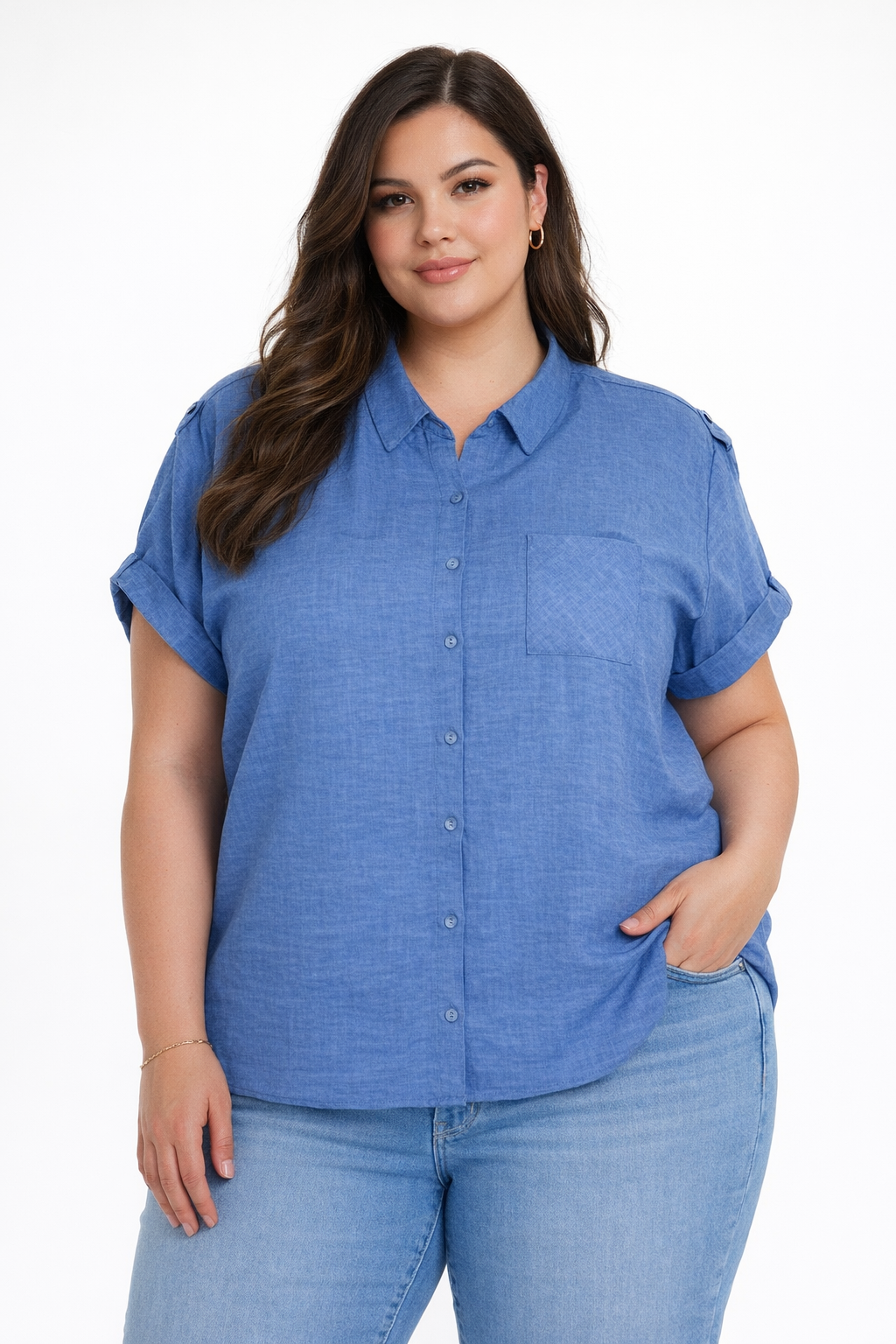 BLUSA DE BOTONES TALLA PLUS WHITE RHINO