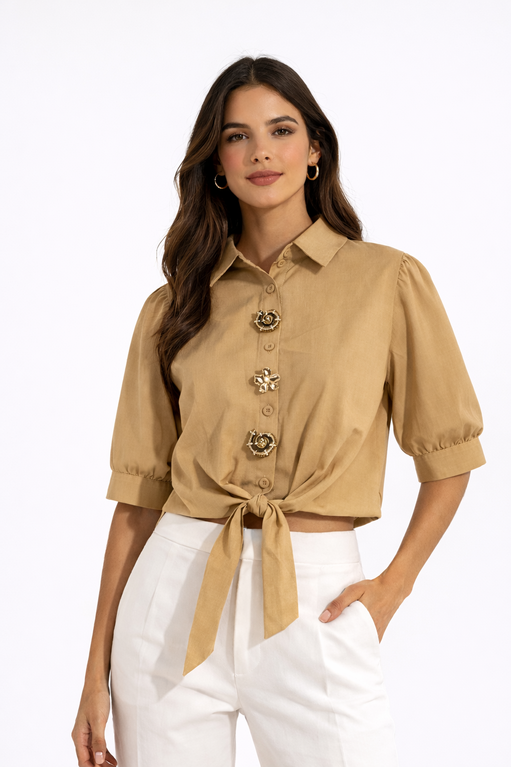 BLUSA DE MANGAS TRES CUARTOS Y AMARRE CRETA