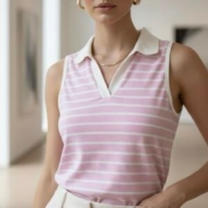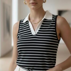 BLUSA DE RAYAS CON ESCOTE EN V Y CUELLO RUNWAY