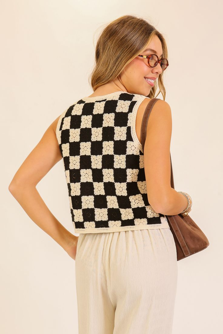 BLUSA TIPO CHALECO CON CUADROS Y FLORES TIMING
