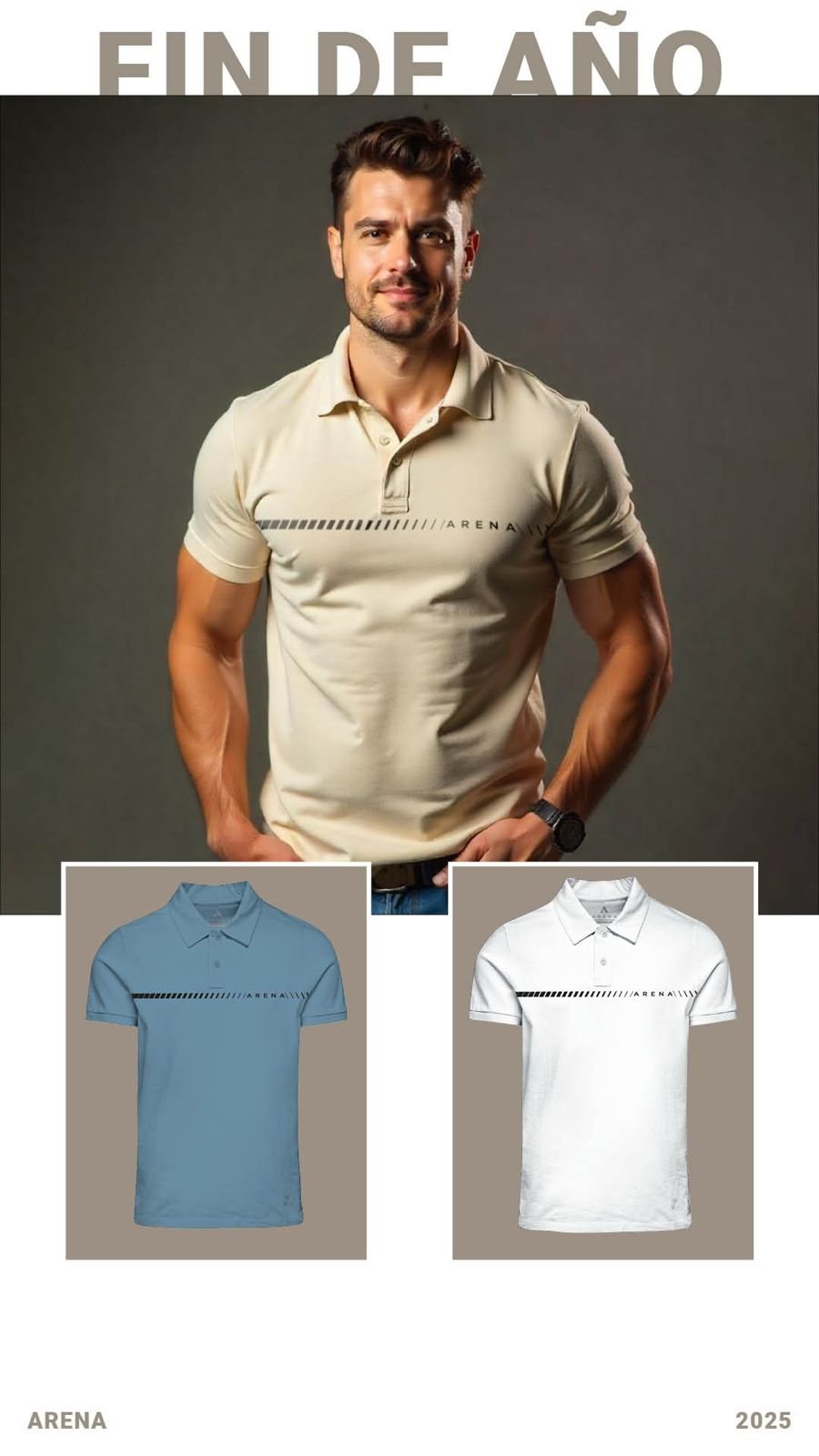 CAMISETA TIPO POLO CON ESTAMPADO LINEAL EN PECHO ARENA